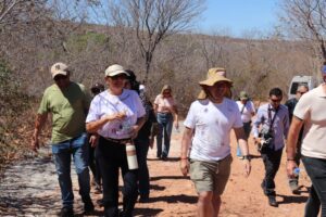 Durante a visita, o secretário participou de uma verdadeira jornada de descobertas pelas trilhas e sítios arqueológicos do circuito, conhecendo de perto locais históricos como as Tocas do Caboclo da Serra, João Sabino, do Juazeiro e do Vento. O grupo também fez uma parada especial no Olho D’Água, um oásis natural no coração da caatinga, onde a vida floresce em harmonia com a paisagem árida do semiárido piauiense.